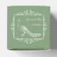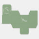 Personalise a unique wedding favour box for guests with this Moss Green Peacock Flourish Wedding Favour Box. Favour box design features an elegant peacock adorned with flourishes. Personalise with the groom and bride's names along with the wedding date. Additional wedding stationery available with this design as well.