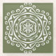 This white mandala sits on a dark moss or olive green background. The colours are harmonious and balanced. Part of the Pympbys Mandala Collection.