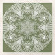 This white mandala sits on a dark moss or olive green background. The colours are harmonious and balanced. Part of the Howlsplann Mandala Collection.
