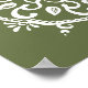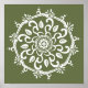 This white mandala sits on a dark moss or olive green background. The colours are harmonious and balanced. Part of the Payon Mandala Collection.