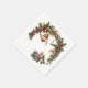 The paper napkin is a delightful piece of holiday decoration, exuding a warm and festive spirit. The primary design features a beautifully illustrated Christmas tree branch, lush and green, stretching across the napkin. Nestled among the needles are meticulously drawn Christmas candle.
