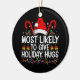 Most Likely Give Holiday Hugs Christmas Matching Ceramic Ornament