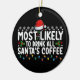 Most Likely To Drink All Santa's Coffee Christmas Ceramic Ornament