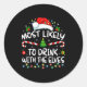 Most Likely To Drink With The Elves Elf Drinking C Classic Round Sticker