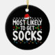 Most Likely To Get Socks Christmas Family Holiday Ceramic Ornament