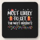 Most Likely To Get The Most Presents Christmas Coaster