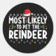 Most Likely To Pet The Reindeer Christmas Holiday Classic Round Sticker