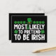 Most Likely To Pretend To Be Irish St Patricks Day Postcard