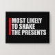 A playful holiday slogan for those who can't resist shaking gifts before Christmas. Perfect for curious family members, kids, or anyone who loves holiday humor and the excitement of surprise presents.