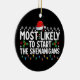 Most Likely To Start The Shenanigans Christmas Ceramic Ornament