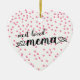 Most loved Mema heart shaped christmas ornament with a field of tine pink hearts background. Visit our shop to view this ornament in a large assortment of grandmother names.