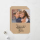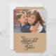 A tan kraft paper look background and back on a Christmas holiday invitation card that's perfect for sending to all your family and friends. Features an area you can easily add a photo, black typography text on front that reads The Most Wonderful Time of the Year, an area on the card back you can customise with your name(s), and black typography text that reads Merry Christmas and a Happy New Year! Photography © Storytree Studios, Stanford, CA