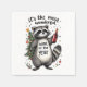 A funny and cheerful Christmas holiday design showcases a cute racoon standing in front of a festive Christmas tree, holding a bottle of red wine. The handwritten text reads, "It's the most wonderful wine of the year." This delightful design is available on a variety of products, making it a perfect gift for wine enthusiasts.