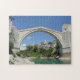 A close up view of Mostar Old Bridge in Bosnia and Herzegovina printed on a puzzle.