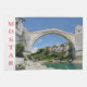 A beautiful view of Mostar Old Bridge in Bosnia and Herzegovina with the Old Town in the background printed on a souvenir tea towel.