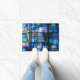 Colourful doormat with modern abstract design created from a digitally manipulated photograph of a stained glass window