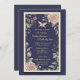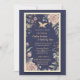 Introducing the Moth, Rose & Thistle Wedding Design Invitation—a blend of timeless elegance and whimsical charm. Featuring a sophisticated deep navy blue background framed by a light beige border, this invitation is adorned with intricate illustrations of roses and thistles, complemented by a unique depiction of a moth near the top centre. The floral motifs create a romantic and natural frame, making this design perfect for couples seeking a distinctive and refined touch for their special day. Customise the central area with your personalised text to make this exquisite invitation uniquely yours.