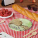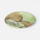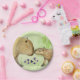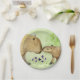 A watercolor painting of a Capybara mother nuzzling noses with her baby adorns these paper plates!