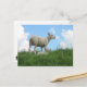 Mother and Baby Sheep Spring PostCard. A Sweet Spring Scene with a mother Sheep and Her little Baby Sheep Lamb in the Grass of a hill against a beautiful blue sky with some fluffy clouds. This postcard is Fully Customisable, Add Your own Image(s) or Text if You want! Great spring card to send to Friends and Family!