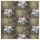 A lovely fantasy fabric pattern featuring a pair of white magical unicorns, a mother and her baby posing in a forest glade. They have floral manes and tails, gold horns and are surrounded by a cloud of magical stars and enchantment. This pretty unicorn fabric would be great for kid's clothing or any craft project that children could be involved in, such as simple decor items like cushion covers (for instance).