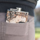 The flask itself is fine. It’s a cheap flask, obviously bought in bulk, however am prepared to overlook that. Given that it is a personalized item, I would have liked to have seen gift boxing instead of the generic packaging. Terrible printing, and/or quality. It’s a cheap, tacky vinyl. It is not cut straight and is also applied in a way that it is overhanging the bottom, causing the glue to catch on items and it will eventually roll and tear, damaging the wrap.
