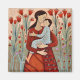 This illustration of a mother and child in a field of tall red flowers celebrates the joy of motherhood and love.