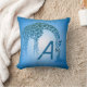 Mother and Cute Baby Giraffe Monogram | blue Cushion