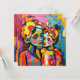 Pretty colourful ai abstract art in pink, orange, blue and yellow mum and daughter with flowery hats and bandannas, sentimental personalised Mother's Day card. You can edit the message on the back to say whatever you want.