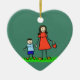 Family features mummy and son holding hands. The woman's dress reads "mummy" and the little boy's shirt reads "me". The family has brunette hair and light skin. The image comes in multiple ethnic versions. There is also a no colour drawing version too. Personalise the mother and son ornament with family names or a personal message for a special mother or mummy ornament pendant gifts! You can make a custom family ornaments for a special Mother's Day gift, new Mummy, Family Reunion or other customised Mum family art gifts!
