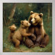 A tranquil and beautiful family of bears in a green forest, showcasing tender bonding moments within their natural habitat, emphasizing the theme of wildlife and parental care.