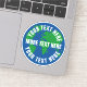 Mother earth blue planet custom laptop sticker. Round planet stickers with custom text. Blue and green world map globe with white text template. Create stickers for global warming, climate change environmental issues, nature preserve, green energy, forest protection, protests, plastic soup, recycle, recycling etc. Land and sea drawing. Save the planet, save the earth!