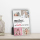 This lovely photo plaque features a dictionary definition of the word Mother that reads: "mother: (muhth-er) noun, the heart of the family", and is easily customizable with 4 family pictures of four photographs of your mom. This plaque makes the ideal keepsake gift to show your appreciation on mother's day, birthdays, Christmas, or any other special occasion.