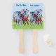 This program hand fan has two horses standing in green grass by a wood fence under a blue sky. One is a grey mother horse the other is her brown baby colt. Customise your text on the front and back with the templates.