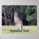 A perfect photo souvenir from Australia, this image shows a mother, or Mum, kangaroo standing upright with her baby Joey poking his head out from her pouch as they stand and graze in the grass in front of the trees in the background. Add optional name, vacation date or message to create your own unique Aussie souvenir photograph.