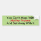 This bumper sticker features the warning that that are consequences every time man experiments and tries to change nature..... engineering plants, humans, and animals.