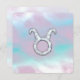A mother of pearl nacre style Taurus Zodiac Symbol on a light pastel pink and blue print. A modern urban elegant design for a great custom gift idea.