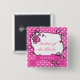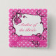 Mother of the bride or groom wedding button. Lovely pink polka dots and swirl floral design with wedding date. Also for sister, aunt of the bride or groom.