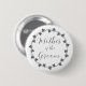 Round, pin-back button for the Mother-of-the-Groom at a wedding event that features a dark grey ivy wreath botanical design with stylised script in the same colour. Select your button size.