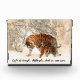 A mother tiger and her cub walk through the snow. Includes the inspiring quote, " Life is tough, (name), but so are you."