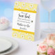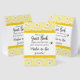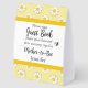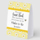 Use this baby shower paper tent sign a "mother-to-bee" theme for an inexpensive upsacle touch to your party decor. It's designed with a simple border of daisy flowers in yellows, with a cute little bee accent and text to direct you guests to notice and sign a guest book. Coordinates with baby shower invitation and other party items in this same collection.