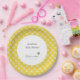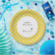 Baby shower paper plate or bowl personalized with a "mother-to-bee" theme. It's designed with a simple pattern of daisy flowers in yellows and whites with a cute little bee accent. Text is pre-formatted and ready for your own details. Coordinates with baby shower invitation and other items in this same collection.