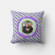 Stylish and pretty HAPPY MOTHER'S DAY Pillow with purple hearts against a peaceful mint green background. At the centre there is a round CUSTOMIZABLE PHOTO surrounded by a purple floral wreath and HAPPY MOTHER'S DAY is in curved text at the bottom. This text is CUSTOMIZABLE so you can add a name to the greeting, and you can upload your own suitable photo. Ideal gift for Mother's Day and especially for New Moms.