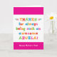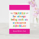 You call your grandmother Abuela, not Grandma. (Abuela means grandmother in Spanish.) Imagine how excited Abuela will be to receive a Mother's Day card addressed especially to her! Your abuela also will love this card's fun, colourful text-based design that says "Thanks for always being such an awesome Abuela! Happy Mother's Day!"