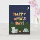 Mother's Day's Day Card for Amá. You call your mother Amá, not Mum. (Amá means mother in Spanish.) So get your Ama a Mother's Day card made especially for her! This cute outdoorsy card is perfect for any Ama who loves camping, nature, the outdoors, and looking up at the stars in the night sky with her kids. The Mother's Day card features a mother bear and a child bear sitting outdoors by a campfire and tent in the wilderness looking up at the stars in the sky and the mountains. The cute Scandinavian-style text reads: Happy Mother's Day, Amá!