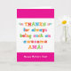 You call your mother Amá, not Mum. (Amá means mother in Spanish.) Imagine how excited Amá will be to receive a Mother's Day card addressed especially to her! Your amá also will love this card's fun, colourful text-based design that says "Thanks for always being such an awesome Amá! Happy Mother's Day!"