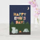Mother's Day's Day Card for Emo. You call your mother Emo, not Mum. (Emo means mother in Finnish.) So get your Emo a Mother's Day card made especially for her! This cute outdoorsy card is perfect for any Emo who loves camping, nature, the outdoors, and looking up at the stars in the night sky with her kids. The Mother's Day card features a mother bear and a child bear sitting outdoors by a campfire and tent in the wilderness looking up at the stars in the sky and the mountains. The cute Scandinavian-style text reads: Happy Mother's Day, Emo!