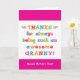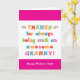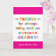 You call your grandmother Granny, not Grandma. Imagine how excited Granny will be to receive a Mother's Day card addressed especially to her! Your granny also will love this Mother's Day card's fun, colourful text-based design that says "Thanks for always being such an awesome Granny! Happy Mother's Day!"