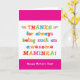 You call your mother Maminka, not Mum. (Maminka means mother in Czech.) Imagine how excited Maminka will be to receive a Mother's Day card addressed especially to her! Your maminka also will love this card's fun, colourful text-based design that says "Thanks for always being such an awesome Maminka! Happy Mother's Day!"
