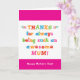 Why pay $10 at a newsagent for a generic card when you can get something personalised and as thoughtful as this for $5? Arrived super quick and great quality. Perfect and great quality