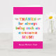 You call your mother Mum, not Mum. Imagine how excited Mum will be to receive a Mother's Day card addressed especially to her! Your mum also will love this Mother's Day card's fun, colourful text-based design that says "Thanks for always being such an awesome Mum! Happy Mother's Day!"